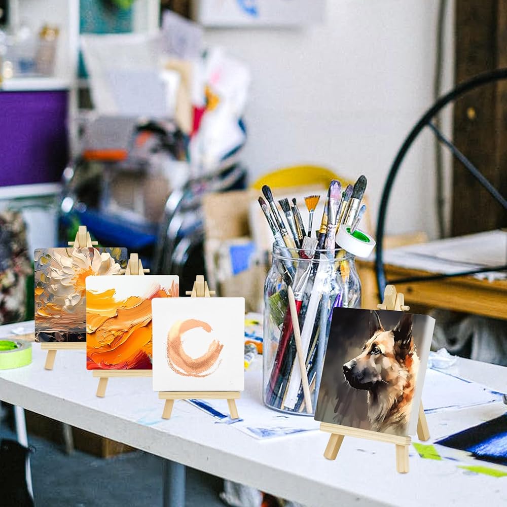 Sufficient quantity: You will receive 12 mini canvases and 12 mini easels, which are enough for you to paint; and can easily meet your needs for sharing, replacement, etc., often suitable for small projects, crafts, photos, business cards, DIY and other art supplies.