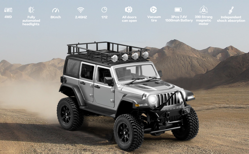 • 390 Strong Magnetic Motor: This crawler rc car jeep is equipped with a powerful 390 strong motor with speed of 8km/h, allowing you to experience the thrill of drifting.