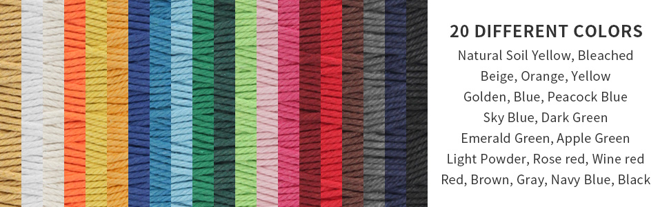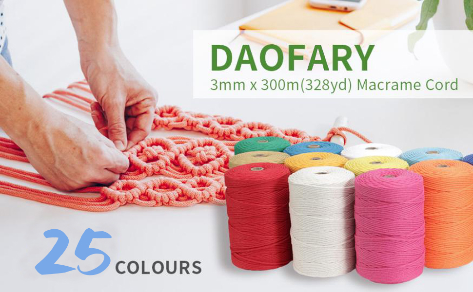 20 Colors for Choose:This 328 yards 3mm macrame cord have 20 bright colors for you to choose.If you experience any issue with our products,get in touch with us for a repair or replacement. We are grateful to get your advice and experience, to improve it and make it better.