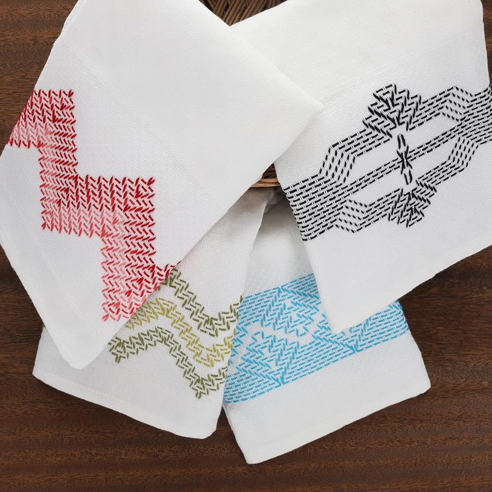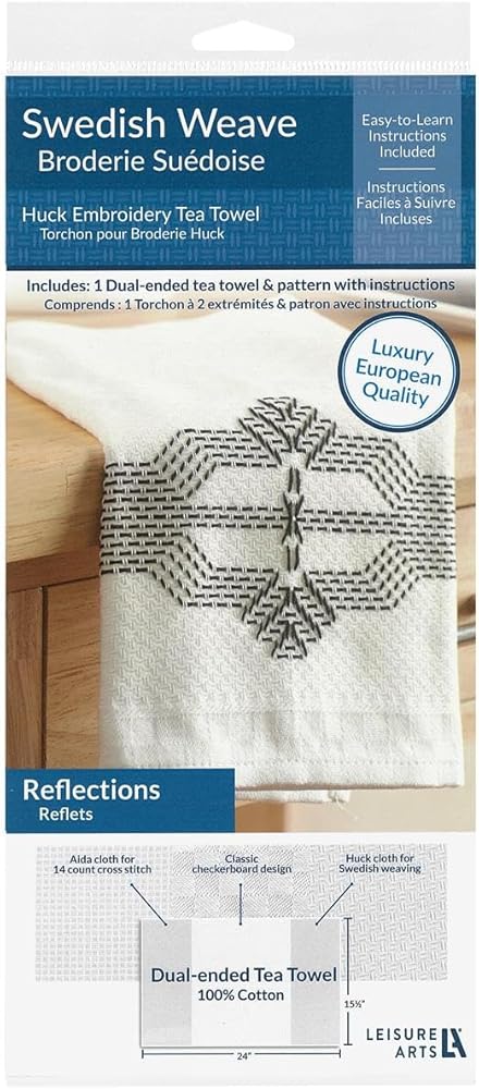Leisure Arts Easy-Does-It Swedish Weave Towels Book- Traditional Swedish Weaving is also known as huck weaving. This weave became popular in America in the 1940's when crafters used embroidery floss to decorate the borders of huck towels. Swedish weaving is usually done on a fabric known as monk's cloth. This fabric has a surface with raised threads that form squares—and allows designs to be symmetrical. Other fabrics with an even weave, such as Aida cloth or huck toweling, can also be used. You will generally use embroidery floss or yarn, along with a blunt-ended yarn needle, the size and type of which are determined by the size of the squares on your fabric. You will also need a pattern and a pair of scissors. Your pattern will usually give instructions on the type of cloth, yarn, and needle to use to replicate the pattern results. With a little experience, you will be able to adapt the design to other fabrics if desired. Today, Swedish Weave stitching can also be used to make table runners, afghans, pillows, placemats, and more. This instructional guide will not only show you how to complete 12 traditional patterns, but will also give you tips for success, floss guides, and more. Designs include: harvest stitch, Victoria, reflections, and more. 20 pages, soft cover.