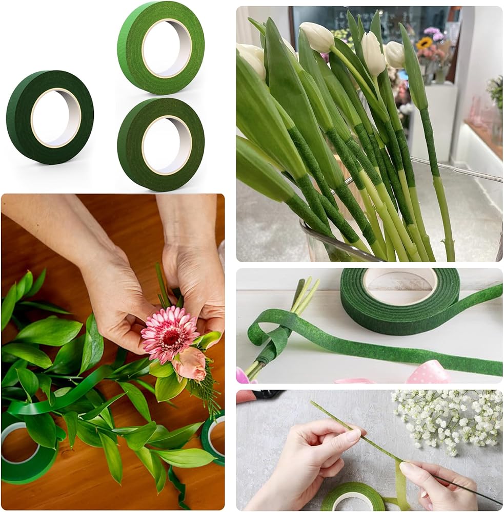 【Green Floral Tapes】 – 3 rolls of green florist tape, 30Yard × ½"W. per roll. Strong and stretchable, tears easily. This self-sealing flower tape is excellent for finishing corsage and wedding bouquet stems, floral novelties, and artificial flowers. You will need to stretch the wrap as you go - it releases the stickiness.