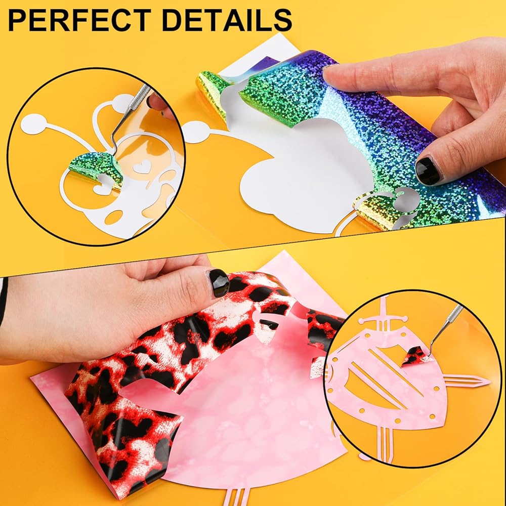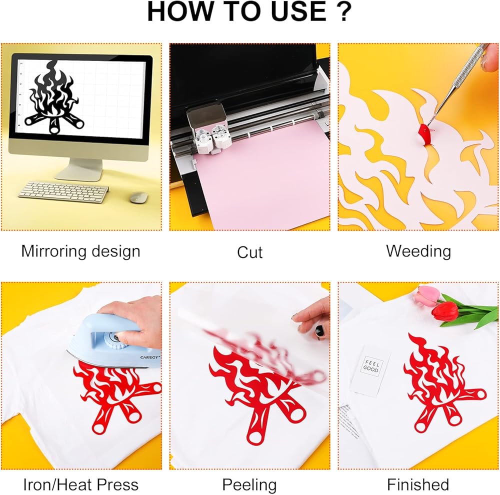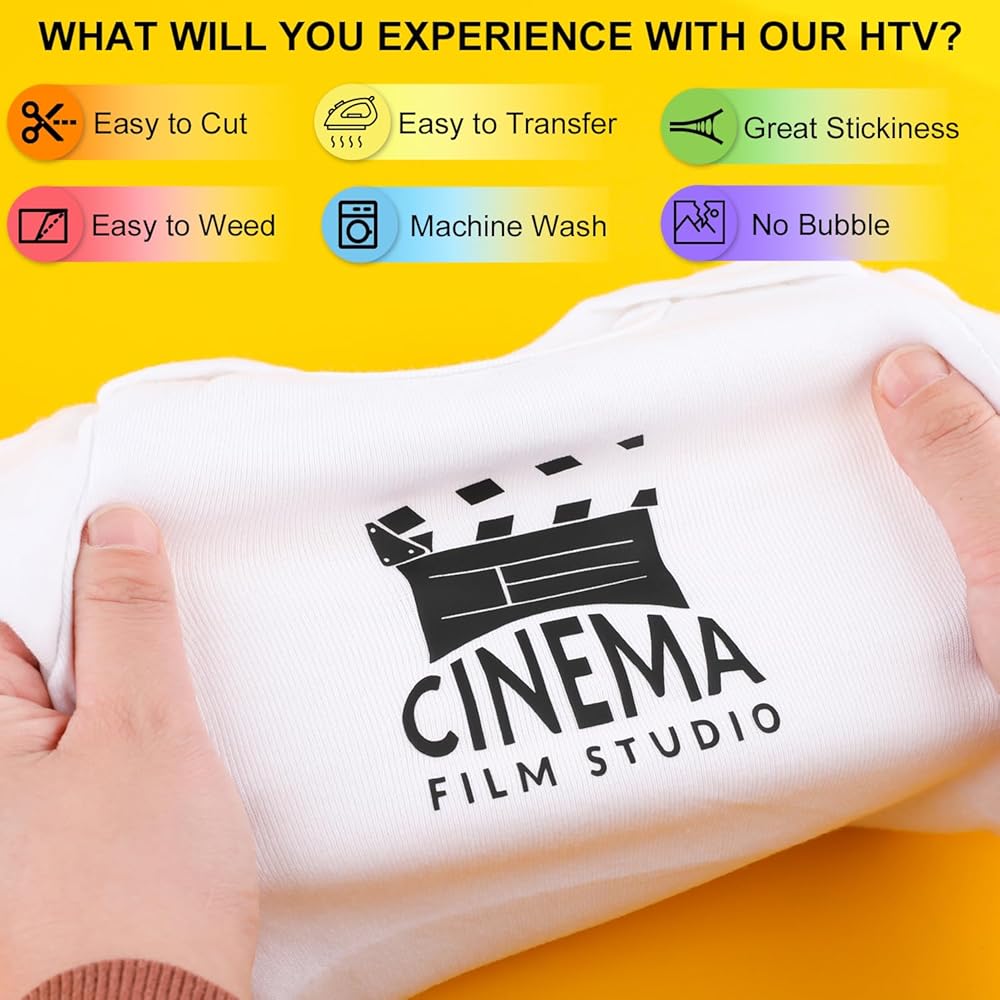 EASY TO CUT & WEED & TRANSFER: The PU htv heat transfer vinyl bundle is thin but with an excellent cutting application feature. The white backing is easy to distinguish the cutting side, and you can follow the instructions and set up suitable parameter with cutters, and then easy to weed and complete the complex projects with NO EXTRA TIME. Quickly and easily apply the adhesive-backed HTV to fabric using a hot iron or heat press