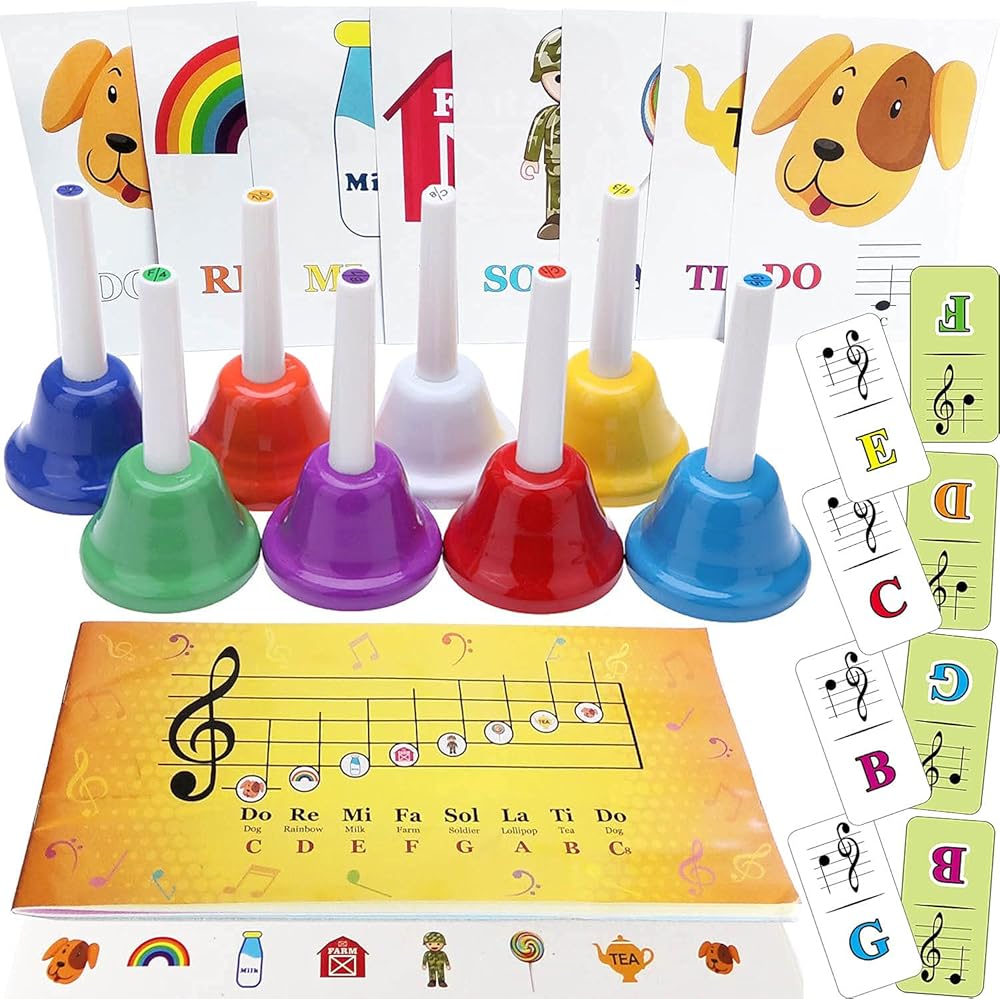 🎵 This musical bell set includes 5 items: ★ Set of 8 musical bells. ★ Stickers for the musical bells.