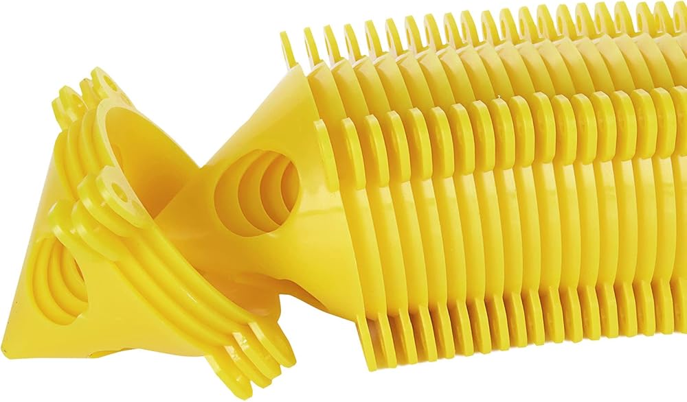 The yellow cone nest for easy storage can support objects weighting up to 200-pound and are solvent resistant