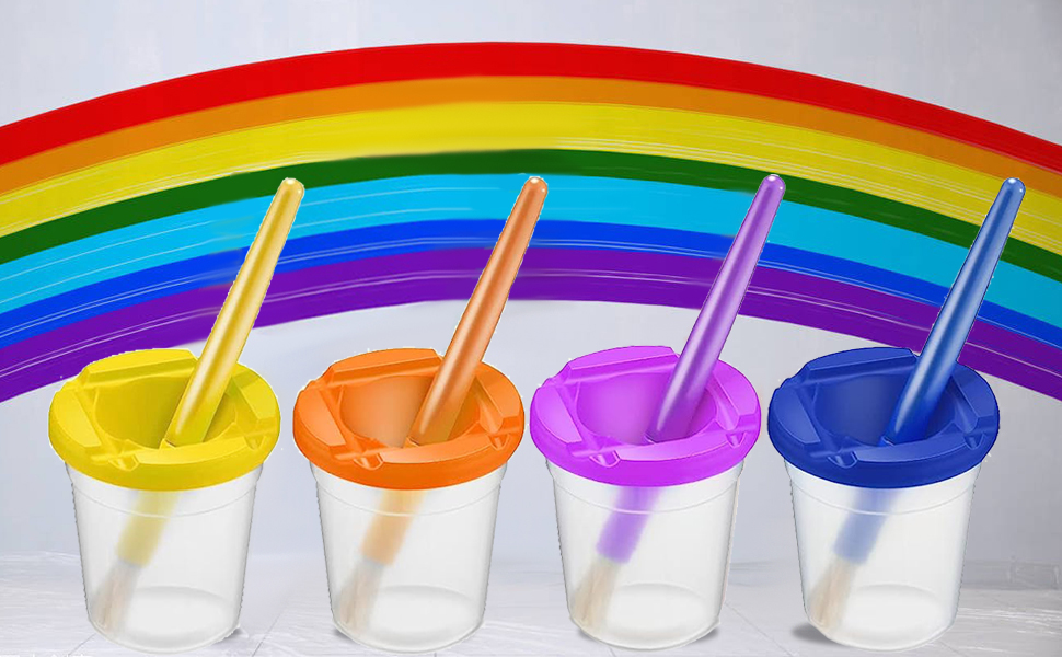 Application: These children's anti-splash paint cups are suitable for watercolor, oil painting, acrylic and other paints. It is very suitable for children's daily painting, artistic creation, school painting, children's art party and other occasions.