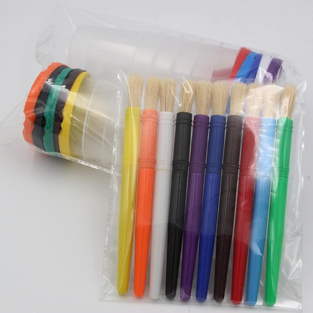 Children's splash-proof paint cup set: There are 10 kinds of splash-proof children's paint cups and 10 paint brushes in total. Purple, green, red, orange, blue, light blue, brown, white, black and yellow.