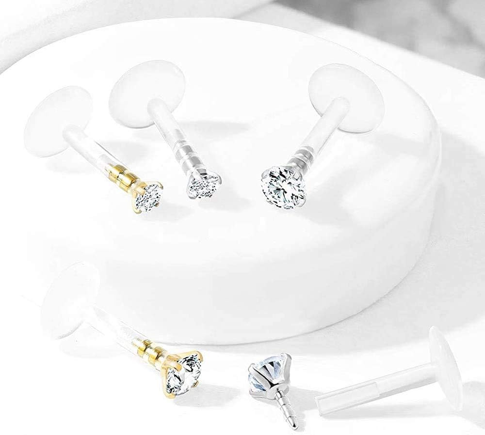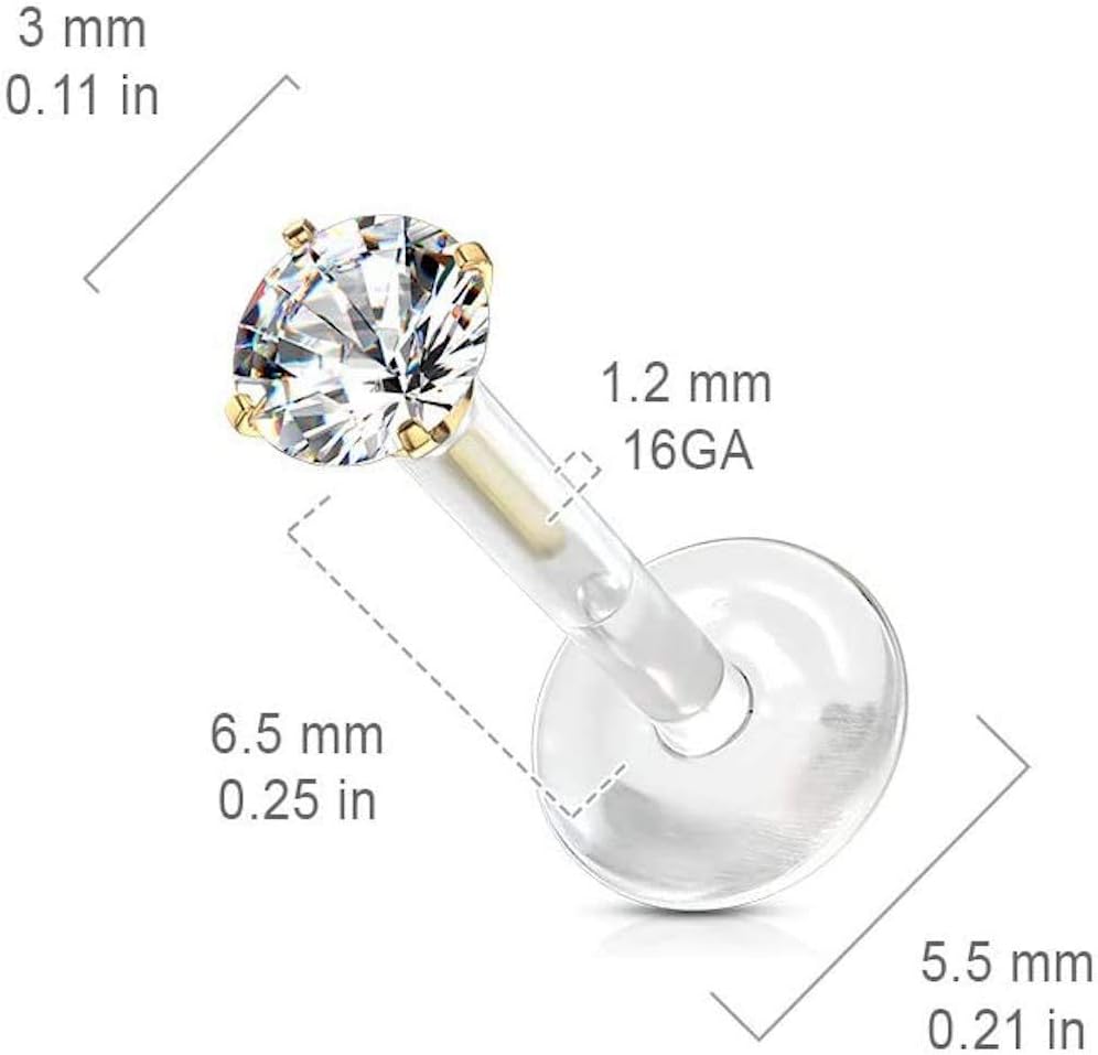 - Prong Set Round CZ 316L Surgical Steel Top Push In Bio Flex Flat Back Studs for Labret, Monroe, Ear Cartilage, and Moree, and More