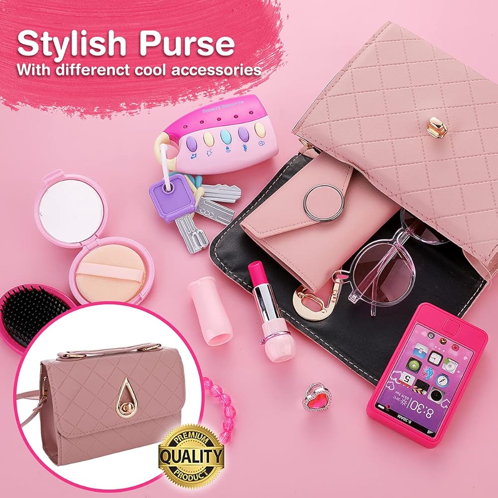 【STYLISH PURSE WITH LIGHT KEY AND PHONE MAKING SOUND】Our kit contains stylish packaging with a stylish purse with a key that lights up and makes sounds almost like a real. Also with a smartphone that looks like a real phone with sound effects!