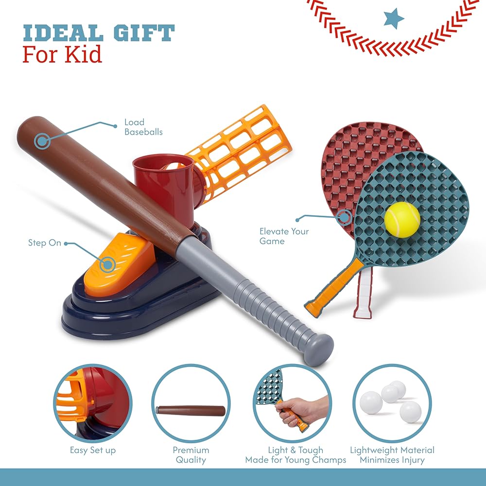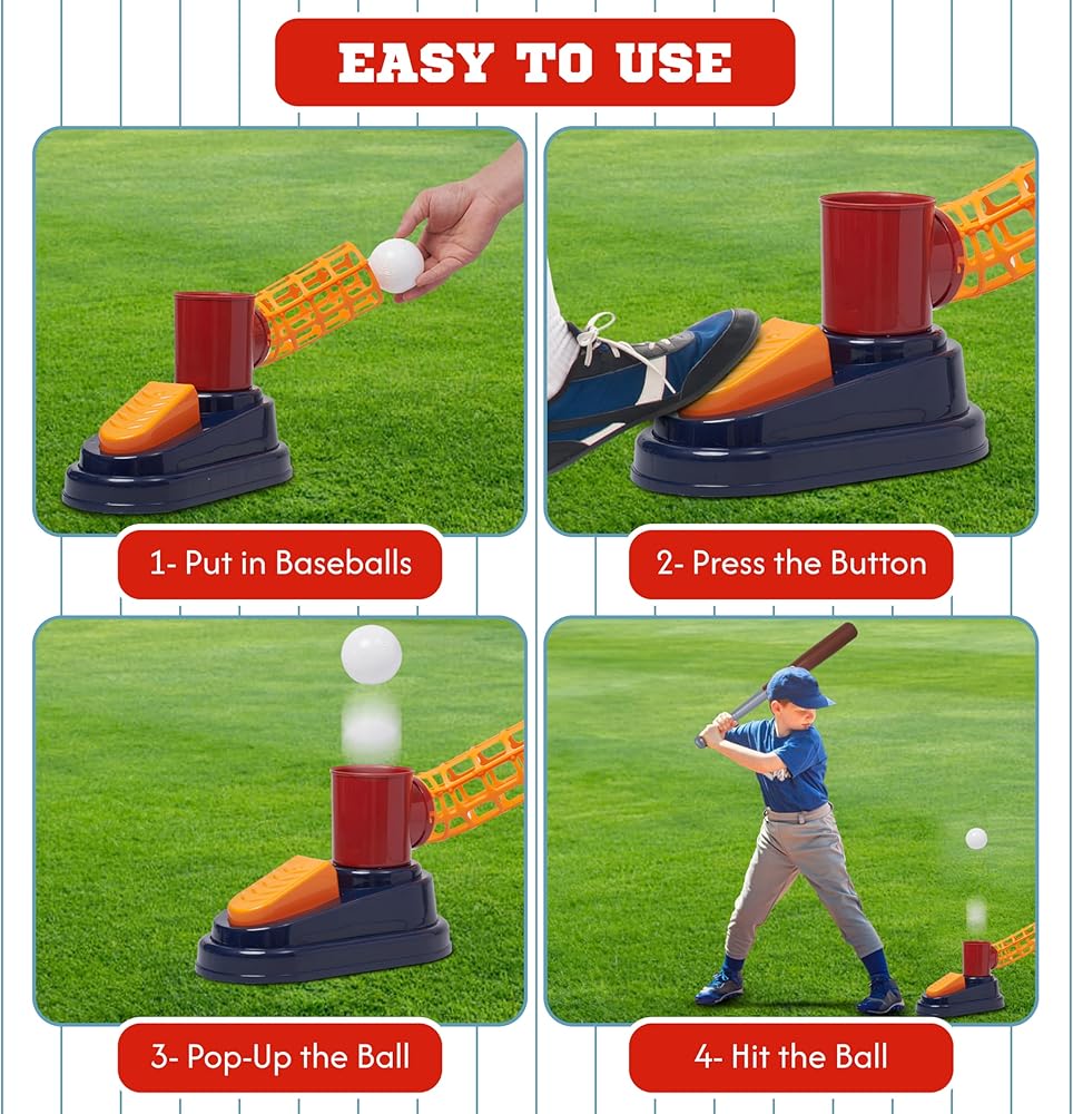 TODDLER BASEBALL SET : Ignite your child's love for baseball with our high-quality set! It includes a plastic toddler bat and 3 oversized baseballs, perfect for soft toss and tee ball practice.