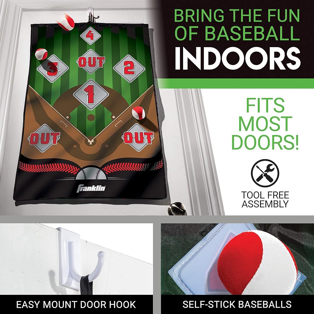 EASY ASSEMBLE: Simply hang the target on the back of any standard door and throw the self-stick soft baseballs to score points