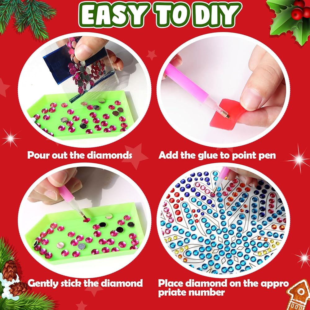 ✌️Easy to DIY: This diamond coloring kit includes 2 Christmas patterns, 1 pen, 1 plastic tray, 1 jelly glue and multiple diamond bag. Simply place the gems in the appropriate places to complete this unique Christmas decoration!