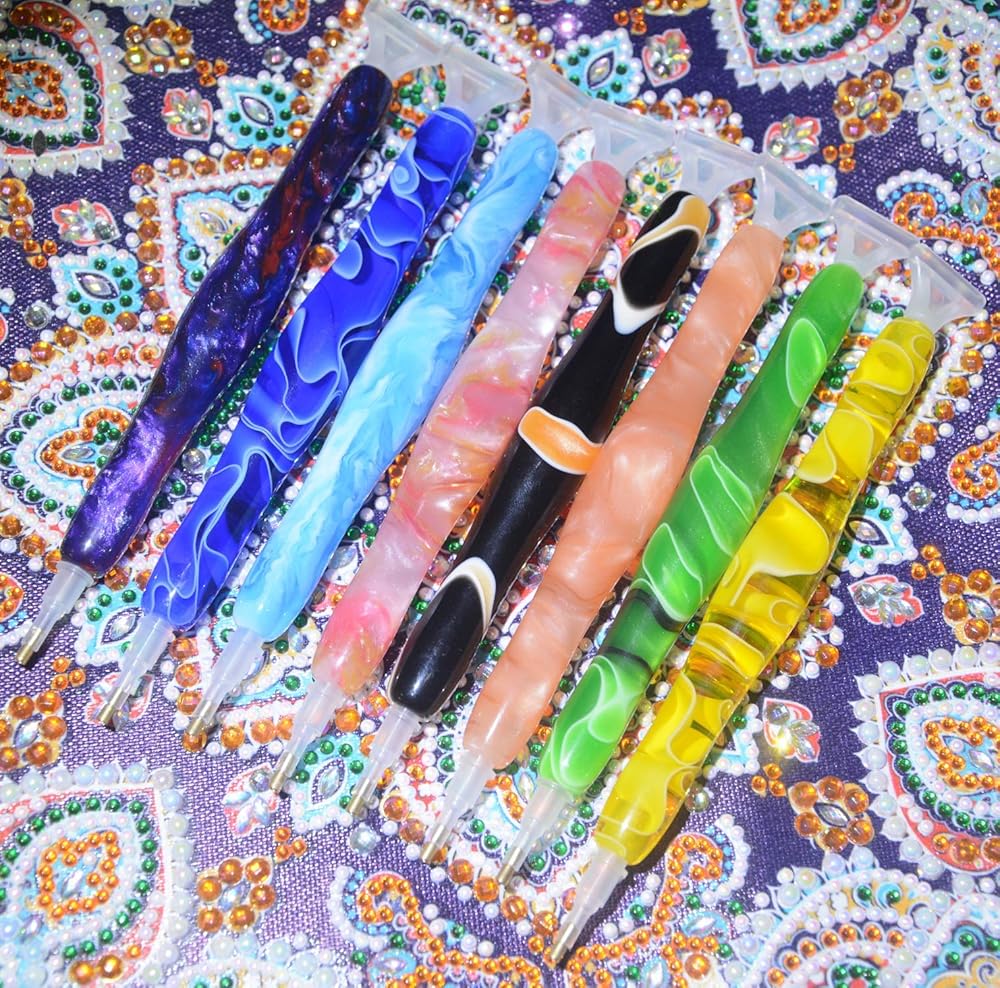 ?Each Pen is A Unique Artwork?Due to the tural properties of the material, each pattern on the diamond painting pen will be slightly different, it is widely use, you can use it as 5D diamond paintings pen, il decoration drill Pen, embroidery decoration drill pen, mosaic art craft decoration pen, ect. It is an amazing gift for diamond painting lover, Arts Lover. If you have any questions or suggestions about the product, please contact us and we will provide you with quality service.