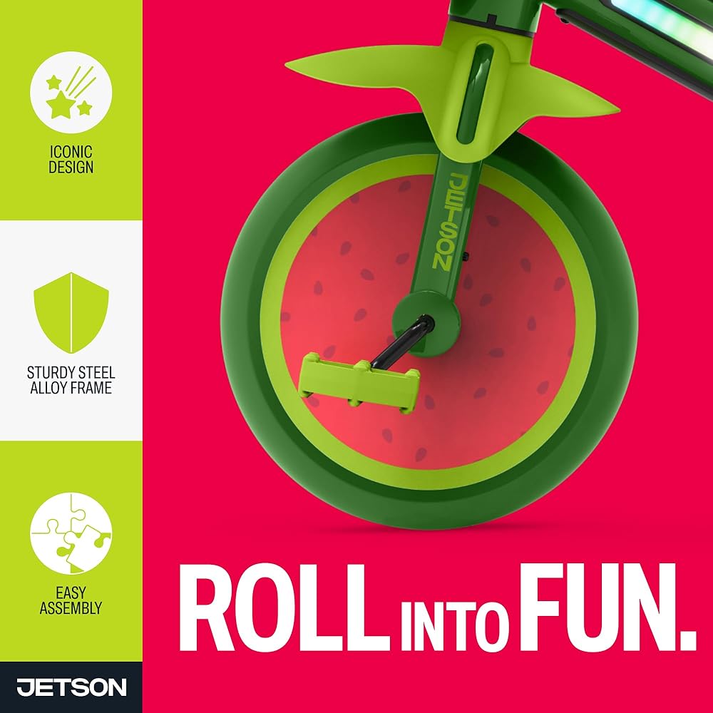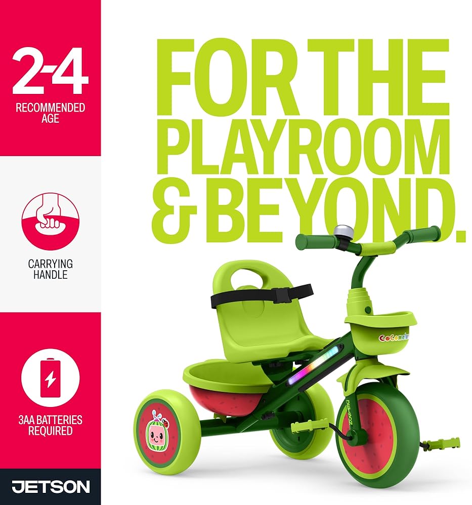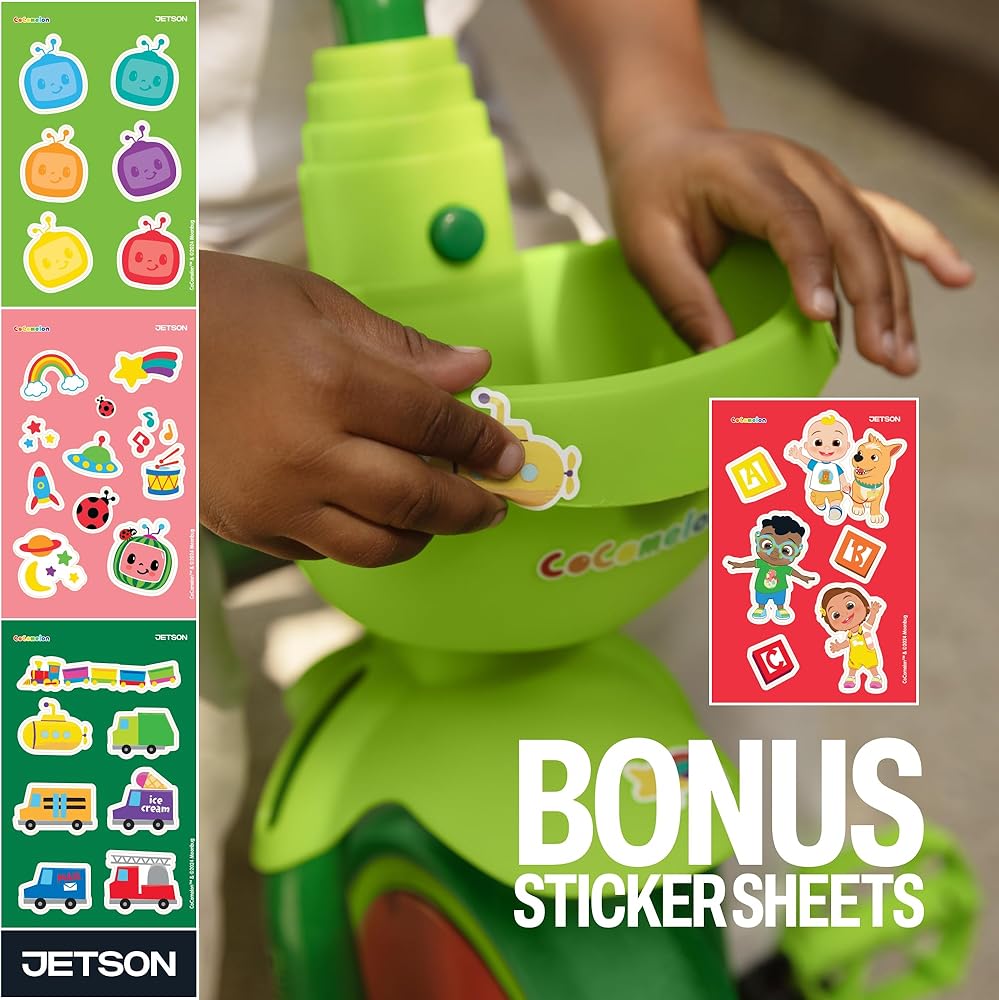 Calling young CoCoMelon fans: The ultimate ride for kids who can't get enough of JJ, YoYo, TomTom, and all their friends, it is styled in the show's signature watermelon colors and features its easily recognizable logo on each wheel.