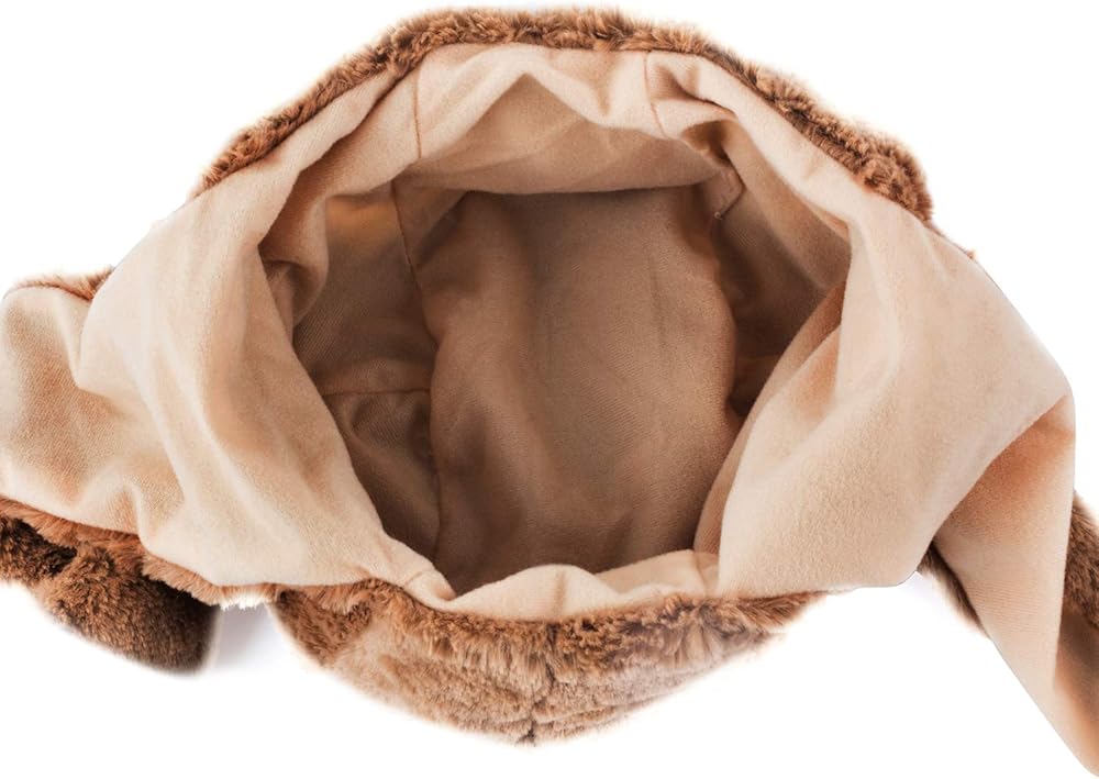 This ultra-soft and comfortable sloth hat embodies the cute cuddly nature of a plush animal with the practical uses of a hat. One size fits most, perfect for both adults and children. There are 2 dangling pom poms on the end of the hat that can be used to wear the hat a variety of ways.