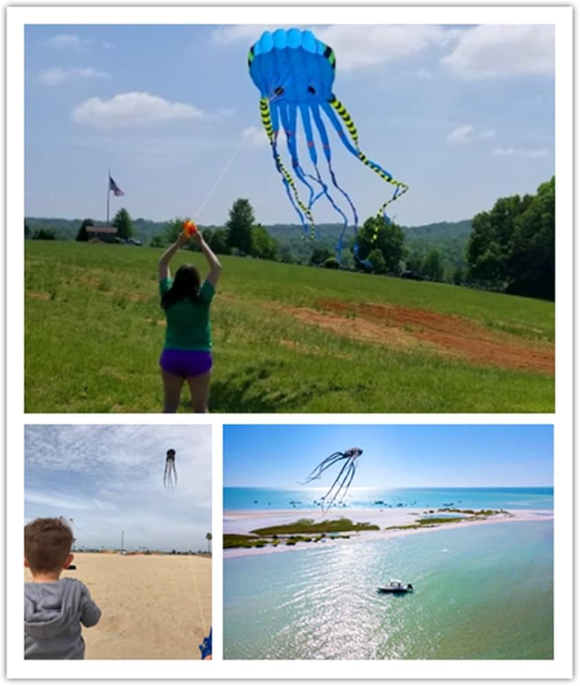 🔥AmazonA's PresentZ: 26Ft (8 Meters ) 3D giant octopus parafoil kite will look stunning in the sky at any time of the year, it will delight flyers of all ages. With its bright and vibrant colors. it is a colorful wonder in the sky and let it looks like Alien in the sky.