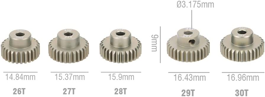 This 48DP 3.175mm 42-45T motor pinion gear is made of high quality aluminum 7075, which is suit for 1/10 RC Car brushed/brushless motor.