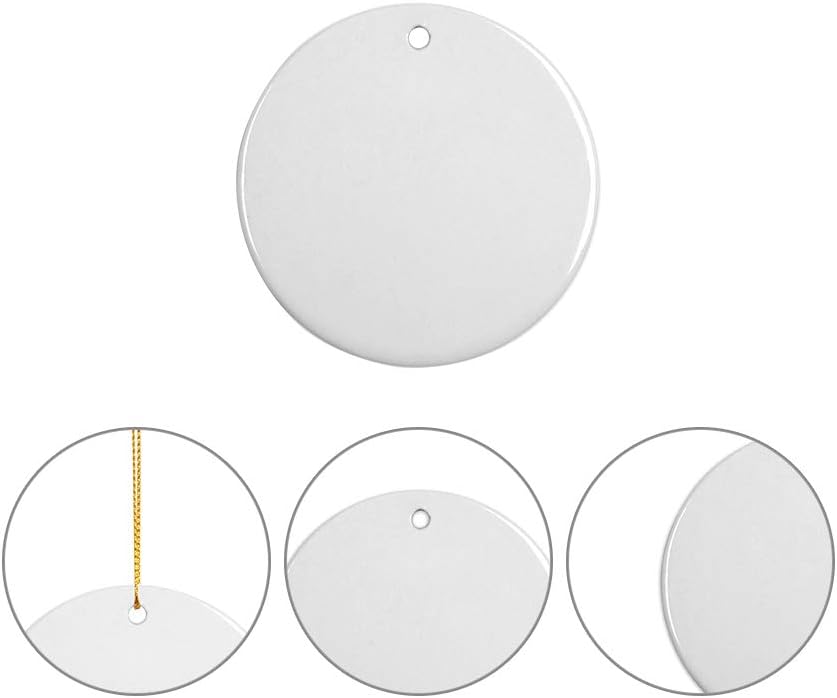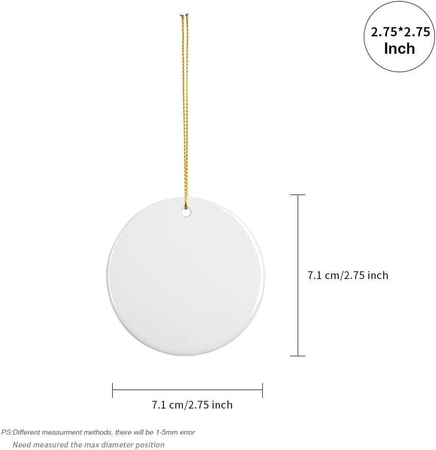 PYD Life 25 PCS Sublimation Ceramic Ornament Bulk White 2.75 Inch Round Blank Ornament with Gold String for Crafting DIY Personalized Christmas Home Decor Bulk