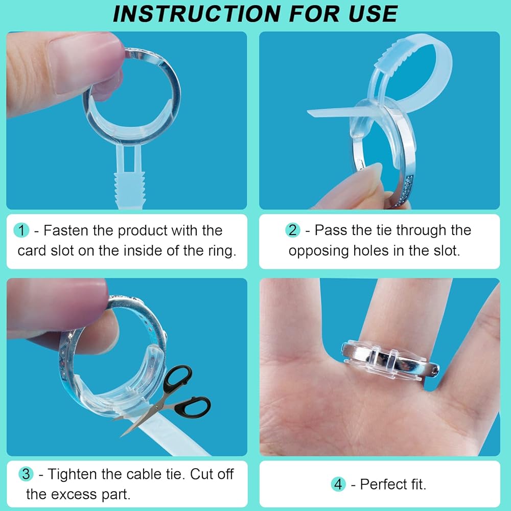 ღ Our Ring size adjusters will make your loose ring a little smaller so that your ring is a better size and more comfortable to wear. They will neither move around nor irritate or rub your skin.