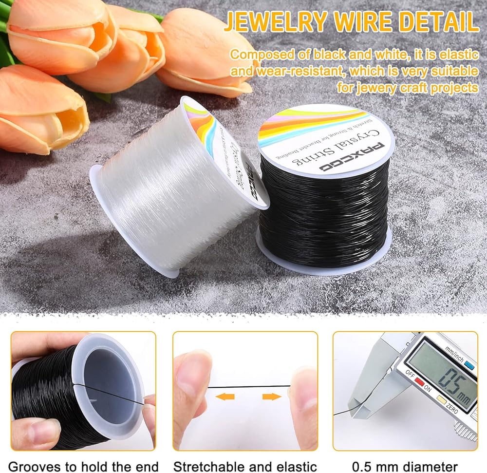 - 2 rolls of 0.8 mm elastic cord for jewelry making