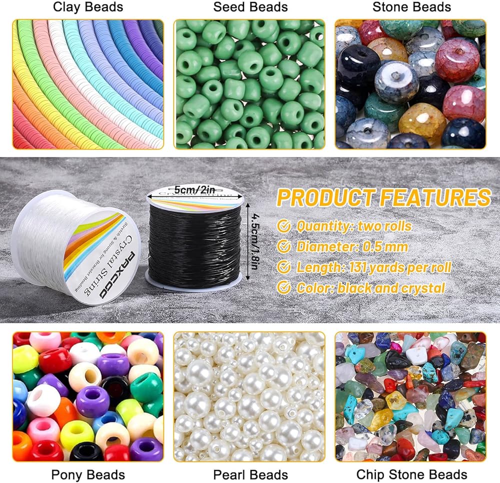 PAXCOO bracelet string for jewelry making is made of high quality strong & stretchy rubber material that are perfect for bracelet making, necklace making, bead weaving and other jewelry making and DIY craft projects.