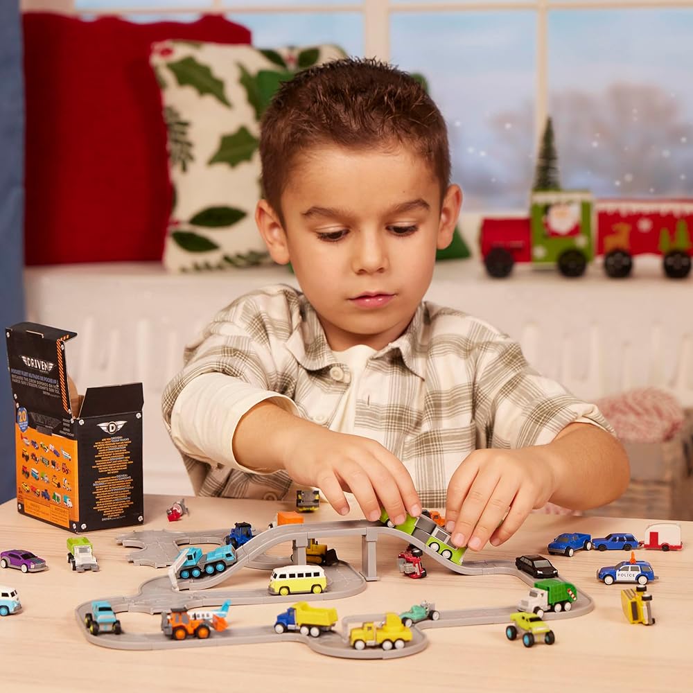 Driven by Battat – Pocket Fleet 1 – 20 Packs Mini Toy Vehicles – Camper Van, Construction Trucks, Cement Mixer, Monster Truck, Race Car & More – Gift Toy Car Playset for Boys & Girls Age 3+