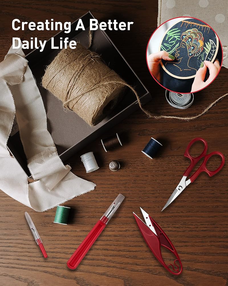 EASY TO CUT & COMFORTABLE TO USE - Our large thread scissors are easy to hold, more comfortable to use, and can accurately and quickly cut off excess parts. In addition, our sewing and trimming scissors can not only remove the thread, but also help you to complete the stitch easily. For seaming work, the included blade can help you cut off excess stitches, open buttonholes, etc., bringing you an excellent experience.