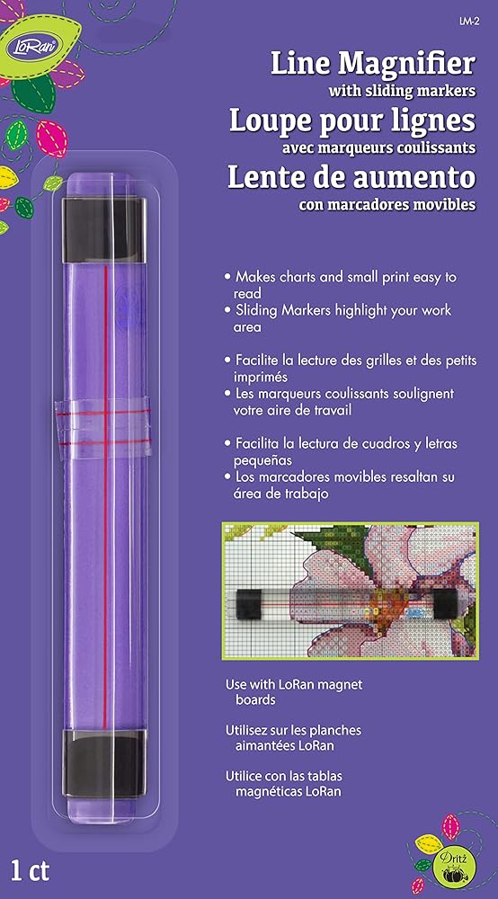 Simply position the line magnifier in place using the handy red line as your guide. Use the two sliding markers to identify your work area. Tighten markers by removing and then pinching each angled side. Loosen markers by removing and then pulling apart each angled side.