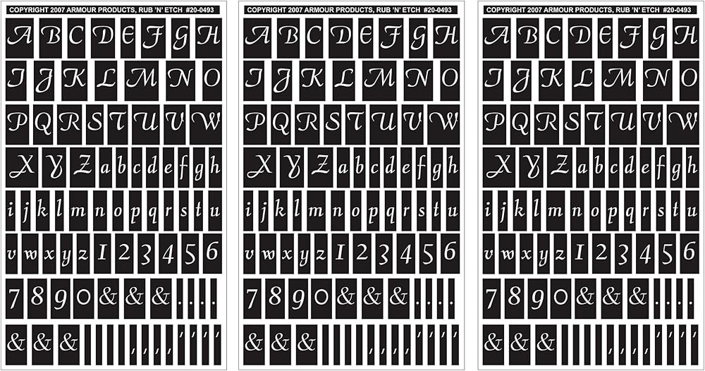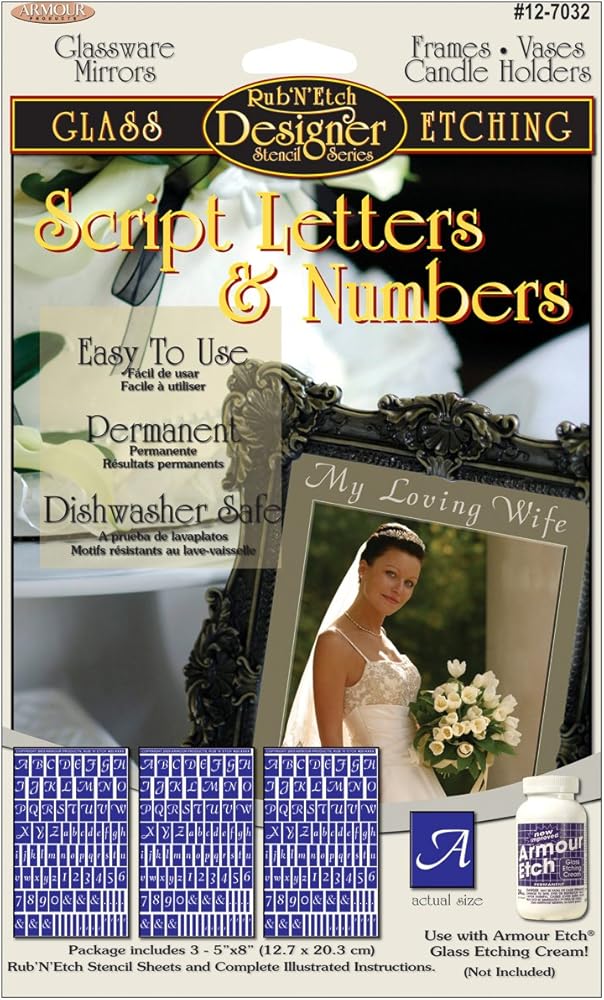 ARMOUR PRODUCTS-Rub 'n Etch Glass Etching Stencil. These small and detailed rub-on stencils were designed for small glass etching projects such as stemware, table mirrors, cabinet doors, sun catchers, bottles and jars. When you combine these pre-cut, Rub N Etch stencils with Armour Etch Glass Etching Cream (not included) you create the easiest, fun-filled way to create beautiful etched designs to permanently decorate and personalize your household glassware, windows and mirrors. Each Rub N Etch stencil sheet was design for one use only. This package contains three 5x8in sheets, illustrated instructions and wood applicator stick. Available in a wide variety of designs. Made in USA.