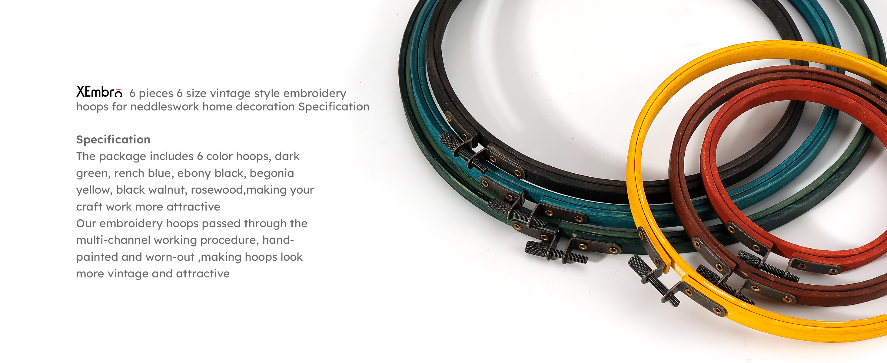 Vintage Color: Includes 6 color embroidery hoops, dark green, french blue, ebony black, begonia yellow, black walnut, and rosewood color, making your craft work more attractive