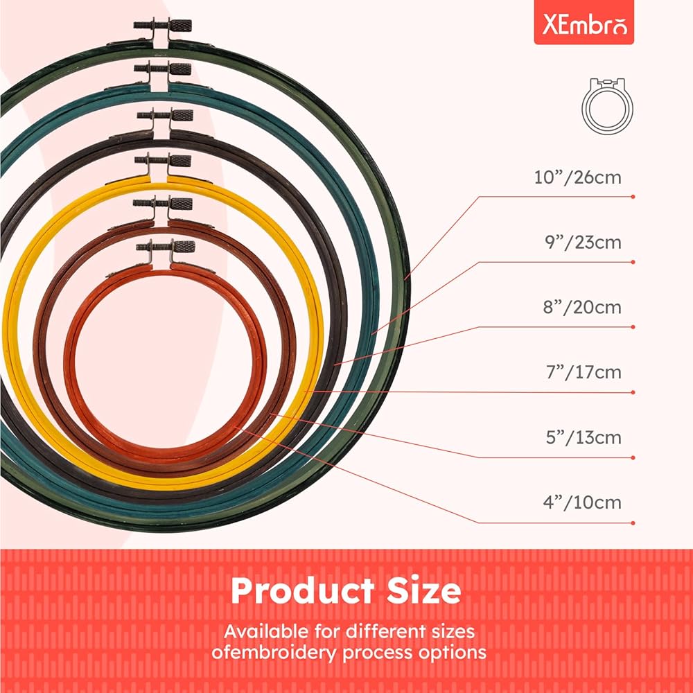 Multiple Sizes(approx.): 4 inch (10cm), 5 inch (13cm), 7 inch (17cm), 8 inch (20cm), 9 inch (23cm) and 10 inch (26cm) with the 6 different sizes to suit your different embroidery frames needs