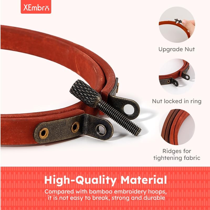 Natural Material & Easy Operation: Made of Bamboo, harmless to the body. A special design that upgrades the screw head is bigger and a ridge design in embroidery ring for better tightening