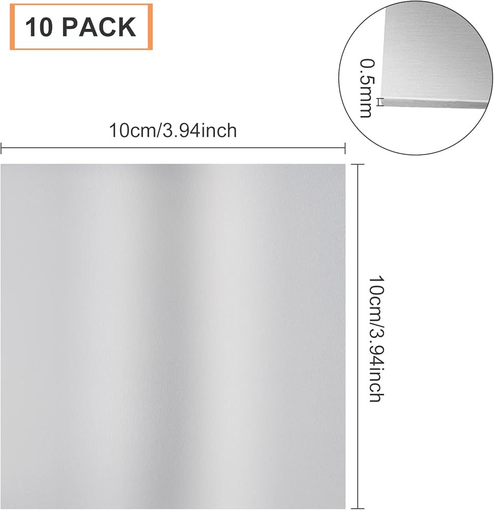 BENECREAT 10pcs 4x4 Inches Unplated Brushed Aluminum Sheets with Film Protection, Dual Sided Aluminum Panels with Strong Composite Core for Stamping Embossing Painting or Mounting