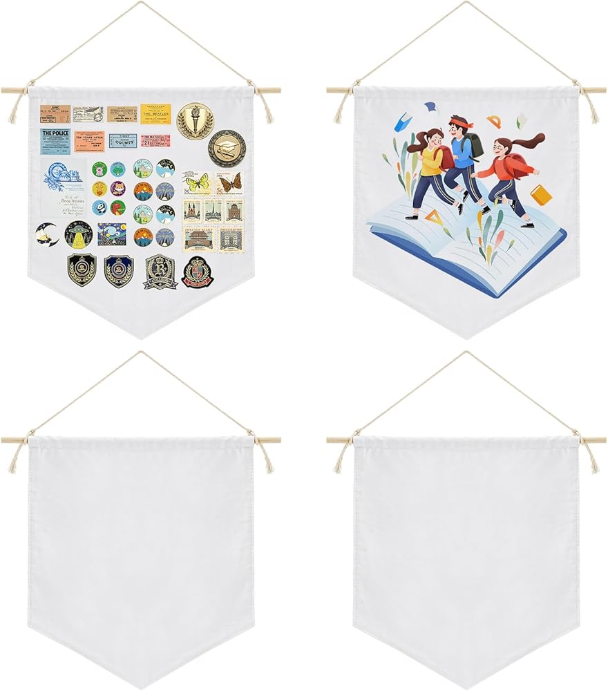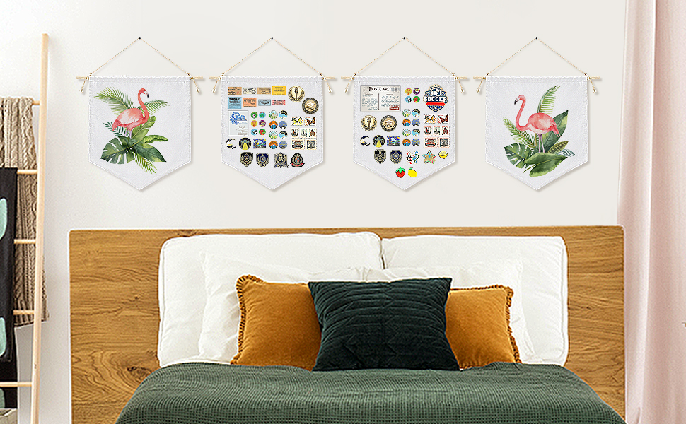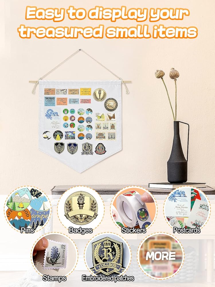 Easy to Use: Our pin banners for enamel pins includes wooden hanging rods and strings. Once you get it, just put your pins, patches, buttons, and badges on it, and then you can hang it directly on the wall, very easy to use.