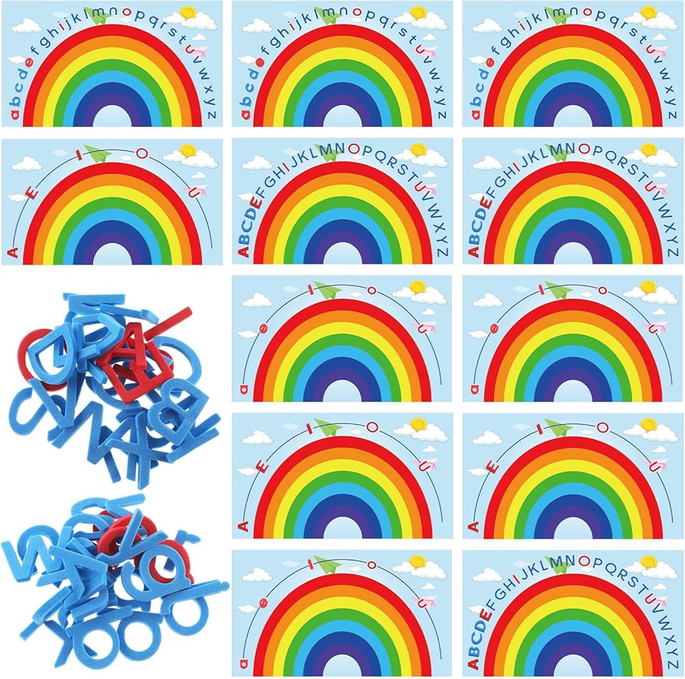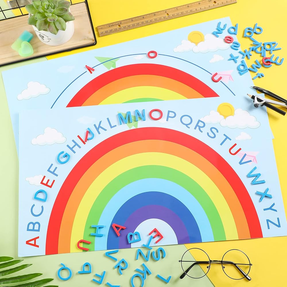Beneficial Design: the alphabet mat's background color is light blue, vivid and adorable, bringing you a good mood while learning and teaching, it is also designed with lovely rainbow pattern, the attractive design will not make children bored while learning; The alphabets toy also designed with 5 red vowels (A E I O U) to help you review key points