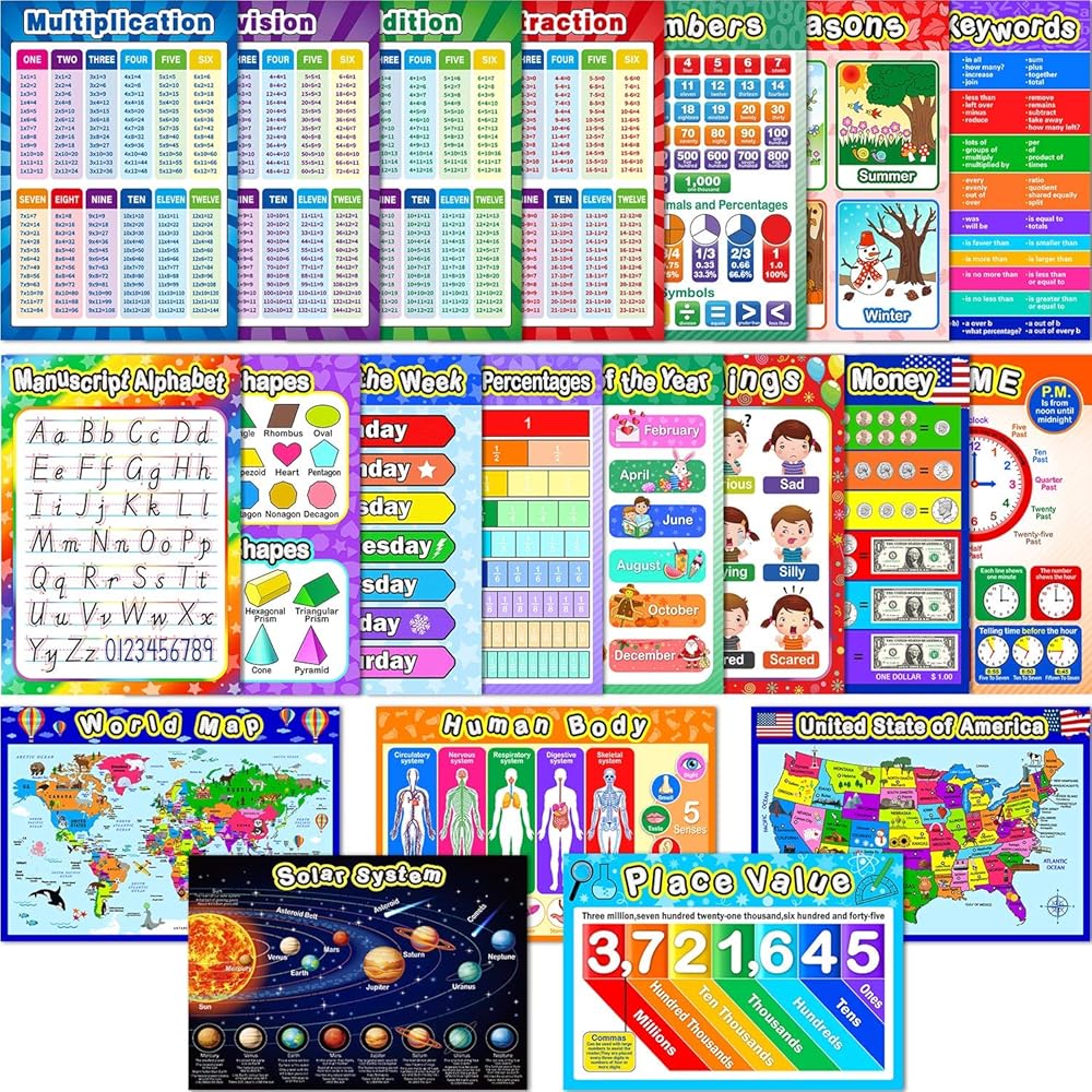 Practical for mom or teacher to put up in their children's room or classrooms. Give the gift of knowledge. Great for home schooling, preschool, kindergarten, elementary and middle school, make learning full of fun and engaging for individuals.