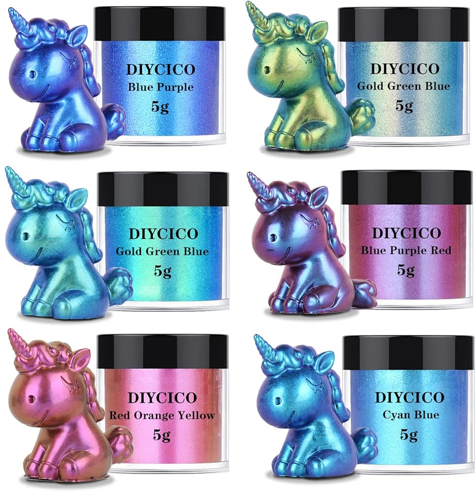 【Saturated Color Chameleon Powder for Resin】 Highly saturated colors and shiners adds that extra touch! Goes a long way too! the sheen of each one is gorgeous and there are color changes in the light. A wide variety of 6 different colors: deep gold green blue, cyan blue, blue purple red, blue purple, red orange yellow, light gold green blue
