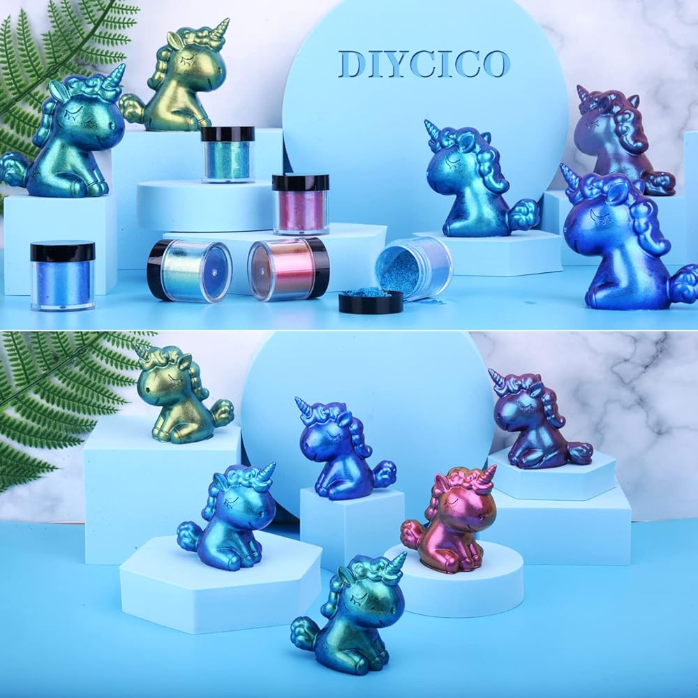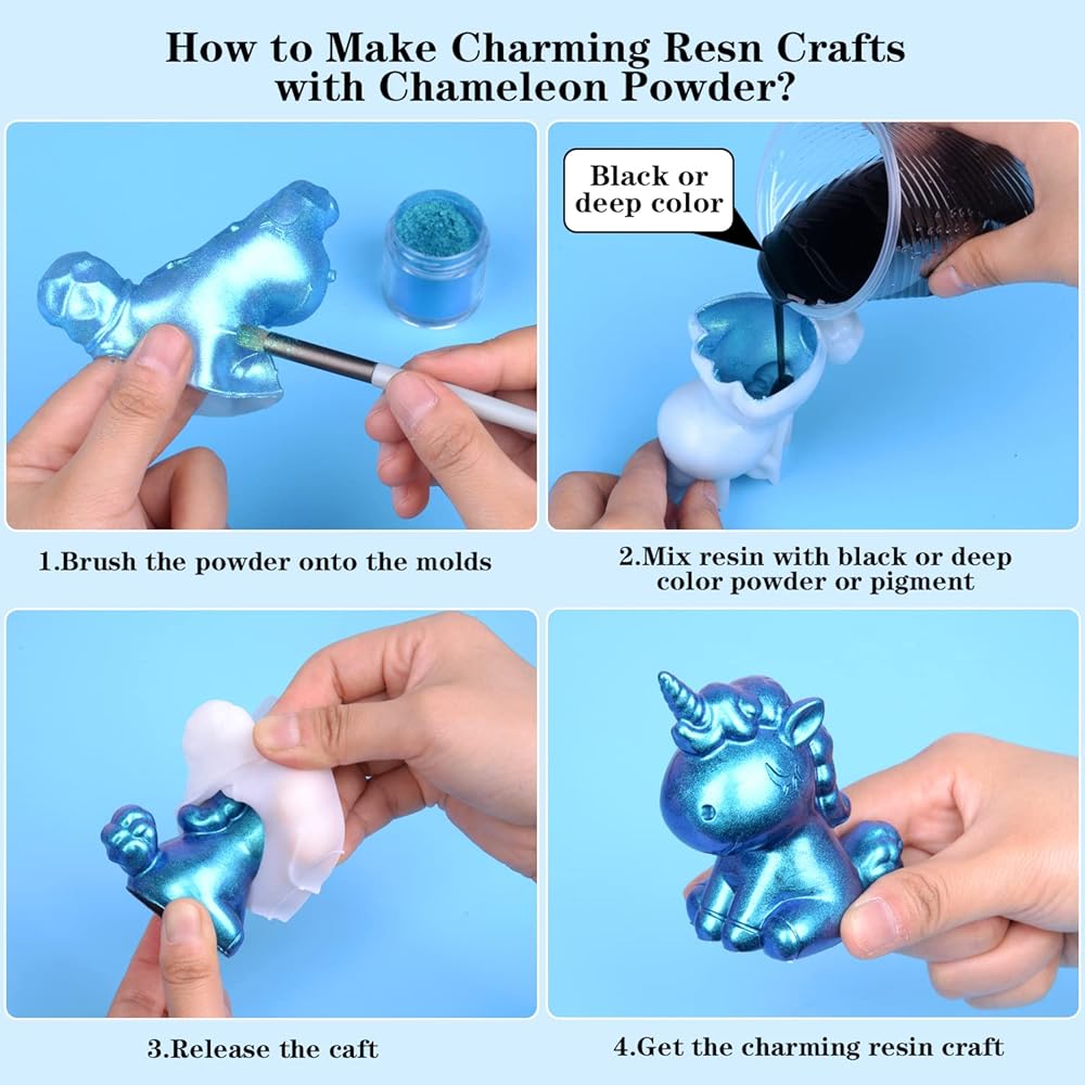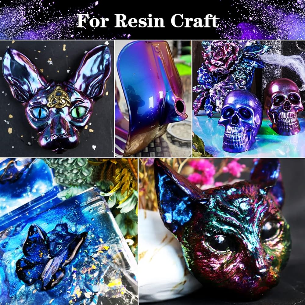 【Eye Catching Shine and Easy to Use】The chameleon powder pigment are easy to add to resin or paint. Can also be brushed onto molds before adding black resin for stronger effects. These use only a small amount to get good color and chameleon effects
