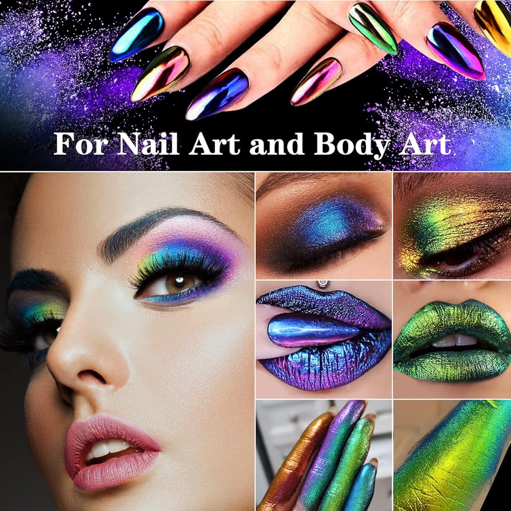 【Widely Application】Color shift pigment powder is perfect for Epoxy Resin Crafts DIY, Painting, Candle Making, Bath Bombs, Soap Colorant. Chameleon mica powder for epoxy resin is also good for the face, body, nails, Lip Gloss, hair, eyeshadow, lip gloss, festivals, and crafts