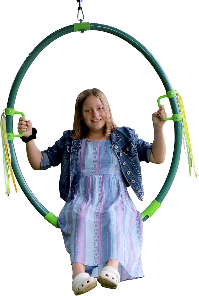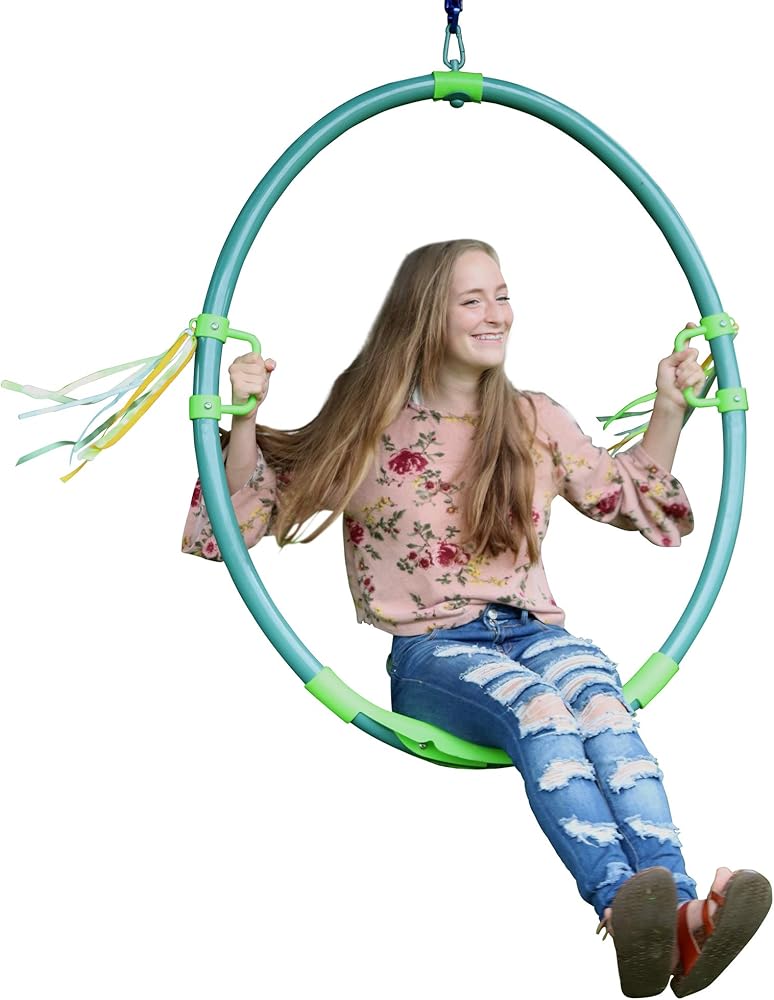 The Hoopla isn't an ordinary swing. It is named as such as it delivers in excitement and fun as it swings and spins riders through the air for countless hours of entertainment. Easy to assembly and with the flexibility to hang from a tree or existing play structure this uniquely designed hoop swing will have riders lining up to take their turn on the Hoopla.