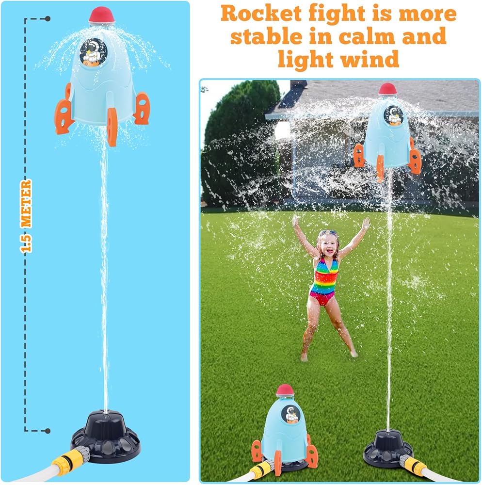 🚀GET READY FOR SOME OUTDOOR FUN - Cute rocket-shaped water splasher encourages fine motor skills, coordination, and imaginative play. Parents can join in on the fun and kids can cool down on hot days with this unique and colorful outdoor toy.