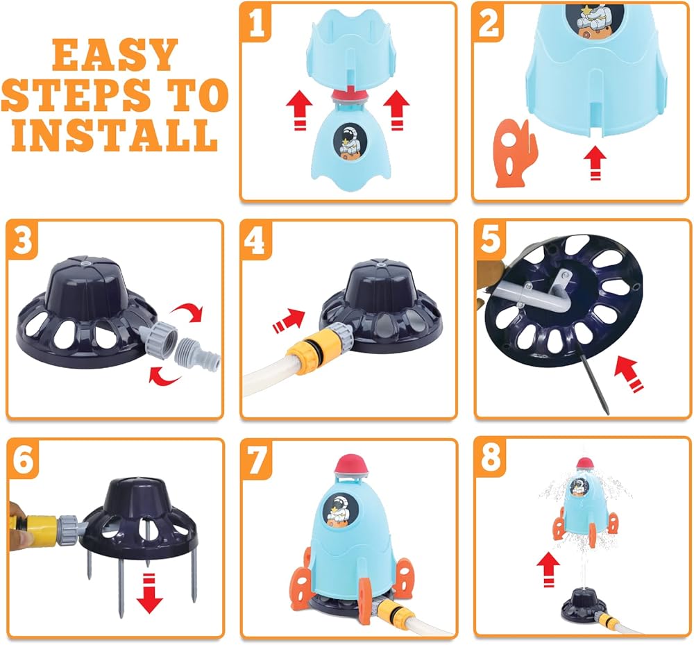 🚀CUTE ROCKET & SPACE ADVENTURE - Parents can join in on the fun and help their kids practice fine motor dexterity and coordination, featuring a cute rocket shape and colorful space adventure theme that kids will love as toddler outdoor toys, as they blast off and cool down on a hot day with this unique and entertaining water splasher!