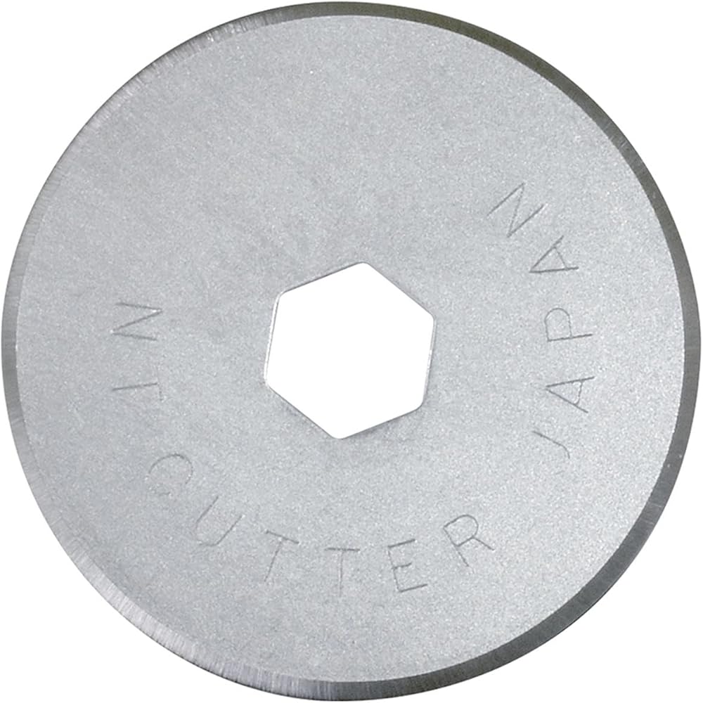 NT Dia. 28mm rotary blades for rotary blade cutter (RO-2P, SK-2P, WA-2P) and large fabric circle cutter (CL-10000P). Special rotary blades cut freestyle. Perfect for cutting fabric, film, leather, thin rubber sheet without twisting the material. These carbon tool steel rolling blades have chromium and tungsten added for extra wear-resistance and produced through multiple stages of precise process to obtain the ultimate sharpness and optimum edge-retention. Two blades per pack. Good for quilting, sewing and art & craft projects. Made in Japan.