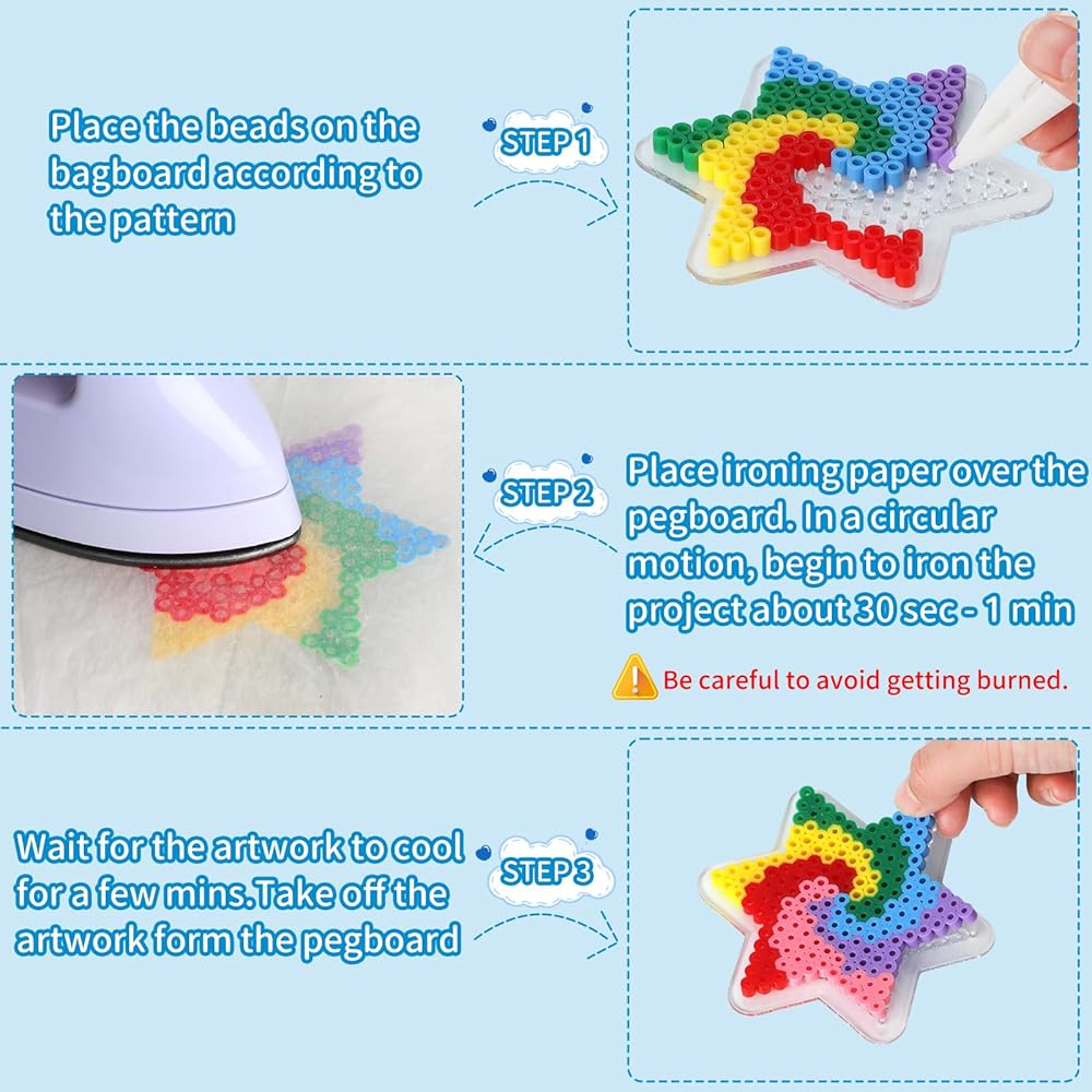 【Perfect Gift Ideas】Whether it's for a birthday, Christmas, or as a crafty surprise, our fuse beads kit is an ideal gift option for young girls aged 4-8 and 8-12, inspiring their imagination and nurturing their artistic talents.