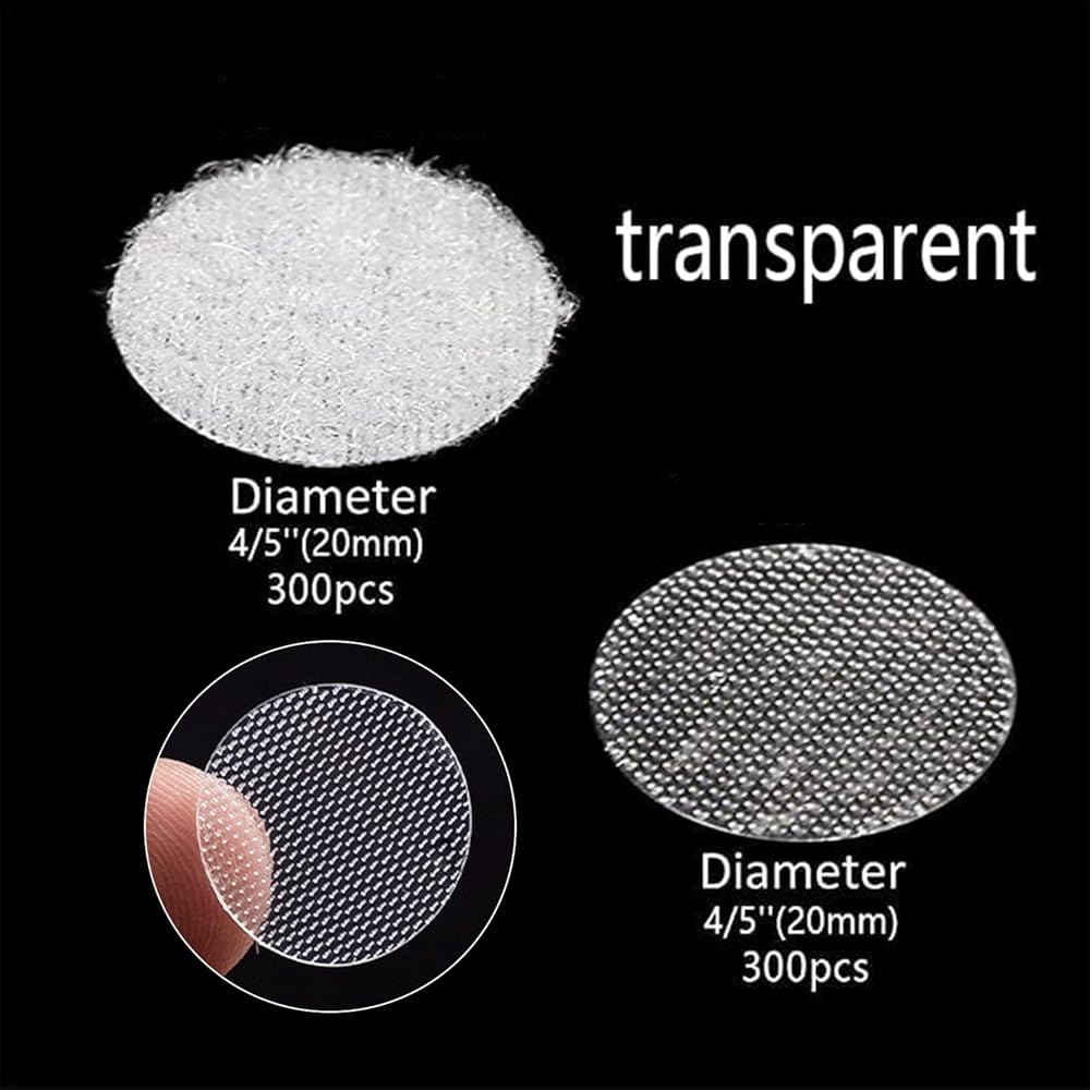 📑【SIZE & PACKAGE】Sticky dots diameter: 0.78inch/20mm. Includes 300pcs clear hook and 300pcs white loop Coins. (Total 300 sets) Exquisite packaging, safe and clean products.