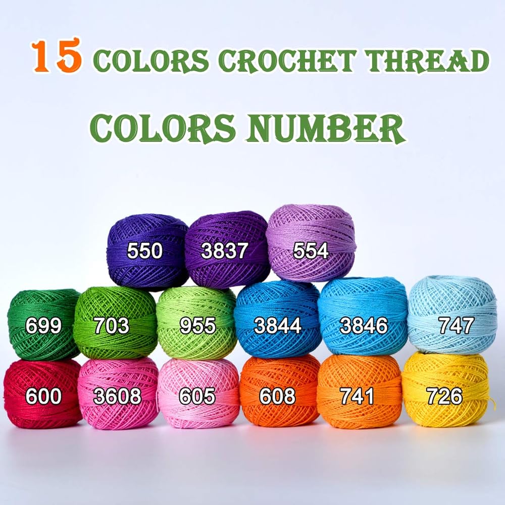 【100% COTTON & Mega pack crochet kit】- Included 15 color size 8 crochet thread, very soft, durable that will be easy to work with.no scraps or recycled fabric, biodegradable, odor-free . 1pcs knitting needles