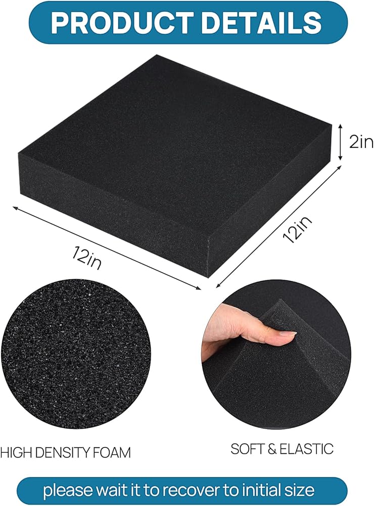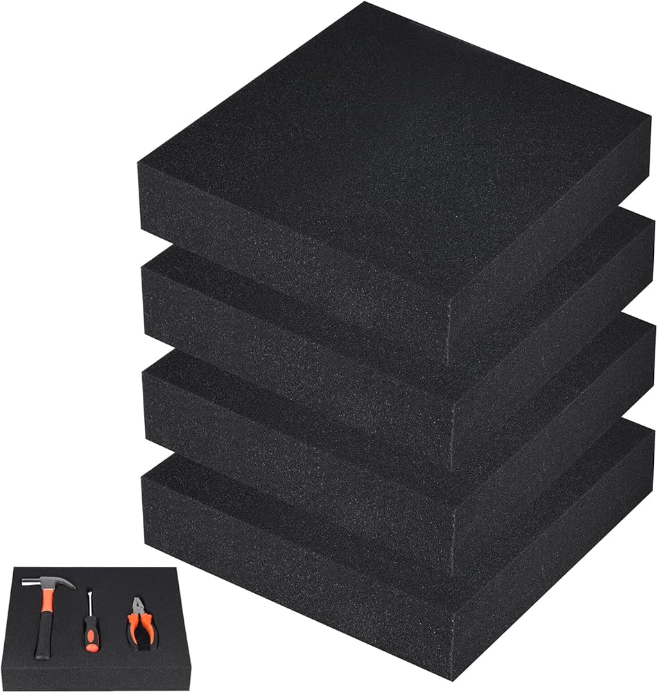 4PCS Black Foam Padding -12 x 12 x 2 Inches Foam Inserts for Cases, Cuttable Polyurethane Foam Pads for Cases Camera Toolbox Storage and Crafts,DIY Projects