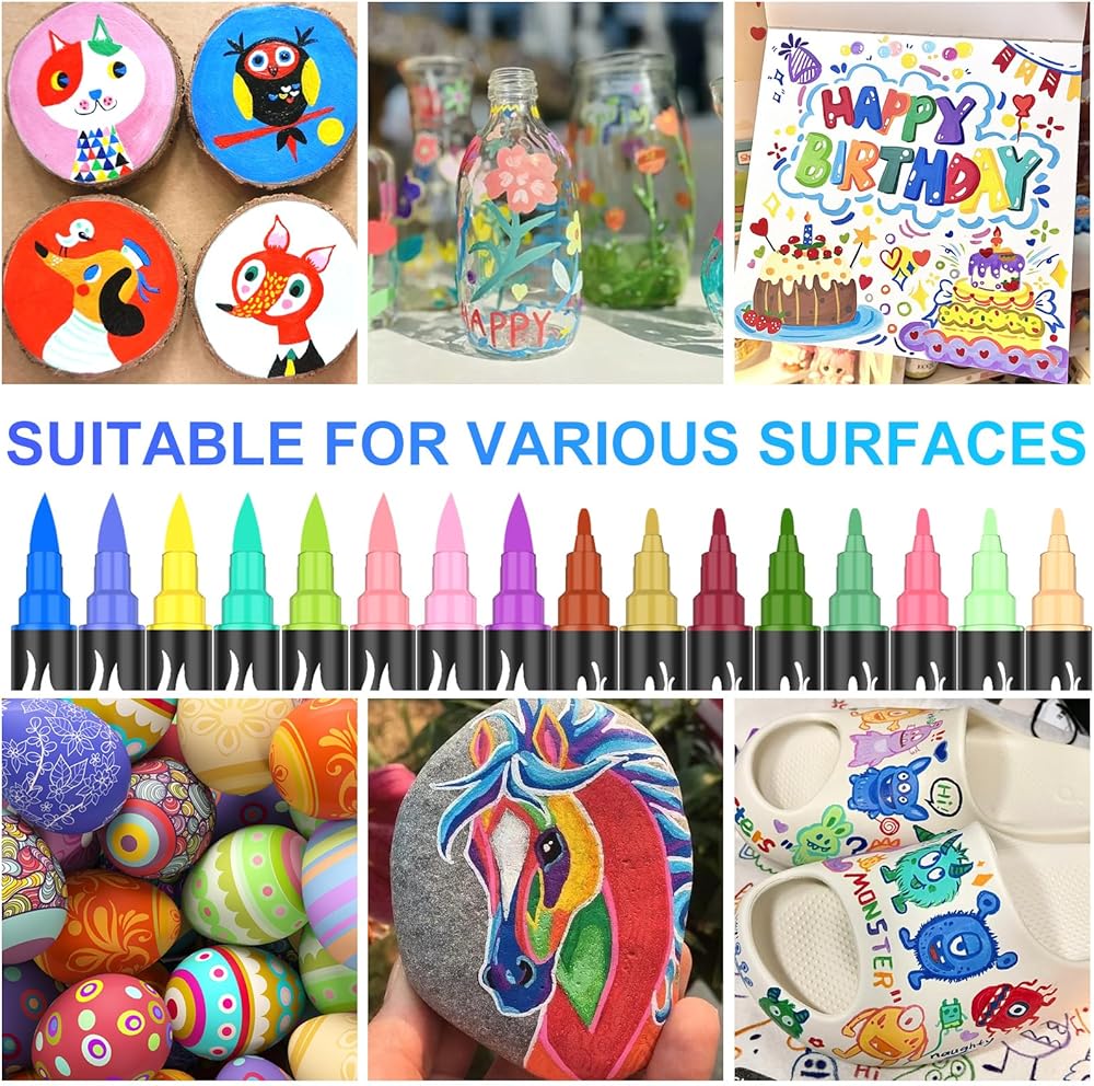 🎄【HIGH QUALITY AND SAFE MATERIALS】Our fabric paint pens are water-based, non-toxic, safe and kid-friendly. The durability and water resistance of paint pens for rock painting make it paints well. Great for exercising your kids's creativity and imagination.