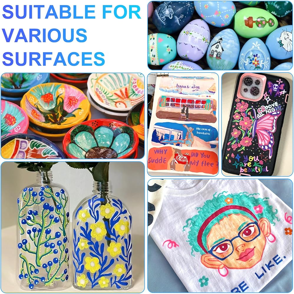 🎄【PEFECT GIFT IDEAL 】You can easily pick the acrylic paint pens for wood that you want in this set based on the color of the pens cap! And these glass paints for glass painting are great markers for kids to DIY projects, scrapbooks, gift card marking, journals, calendar, planners, coloring books and more. It is the best art set gift box for Christmas and Children's Day!