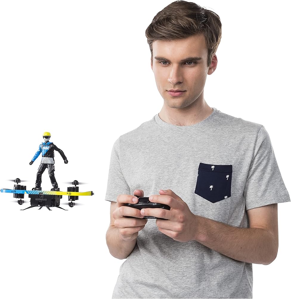 Includes: 1 Air Hogs Extreme Air Board, 1 Controller, 1 User Instruction Guide, 1 Paraglider Attachment, 1 Extreme Sports Athlete, 1 USB Charger, 1 Set of Interchangeable Controller Precision Sticks, 4 Replacement Rotors, 1 Rotor Removal Tool