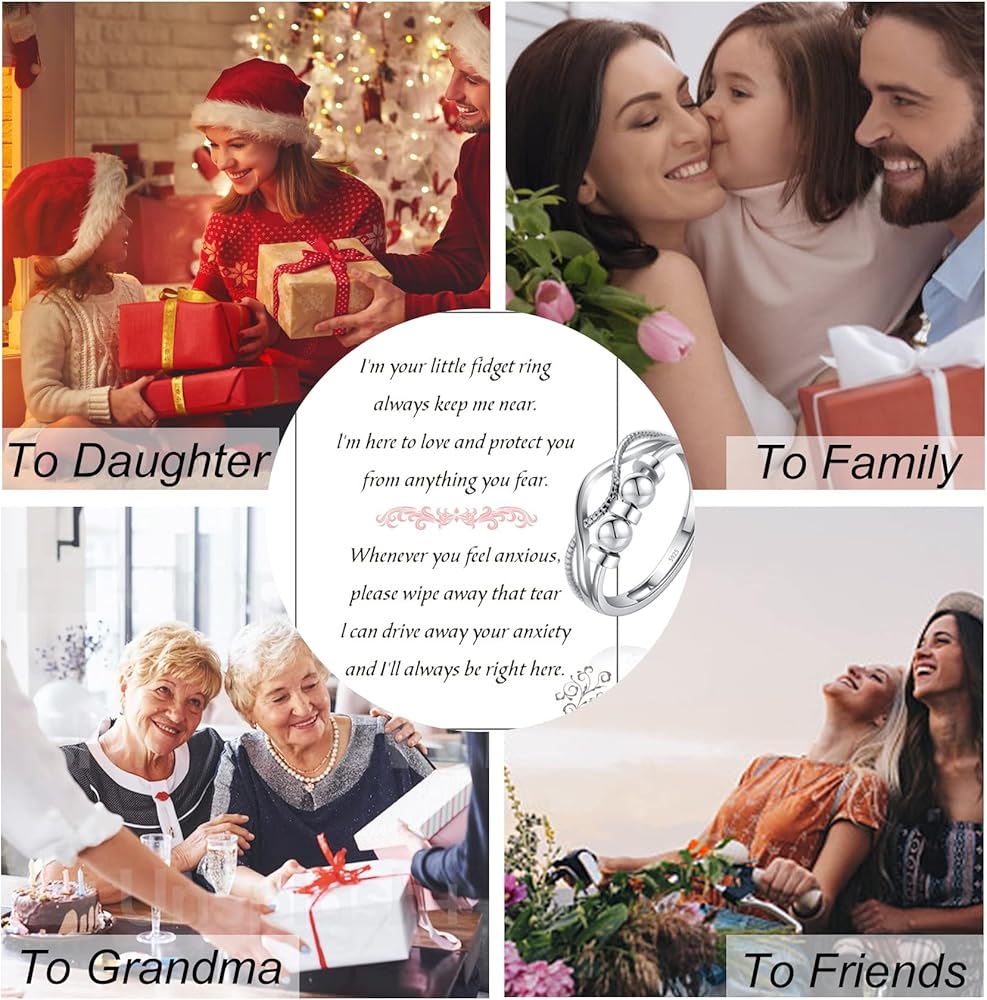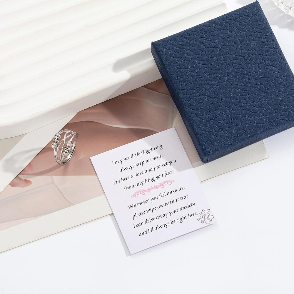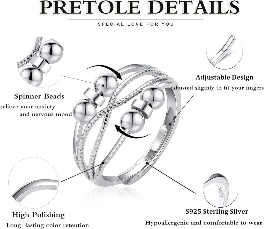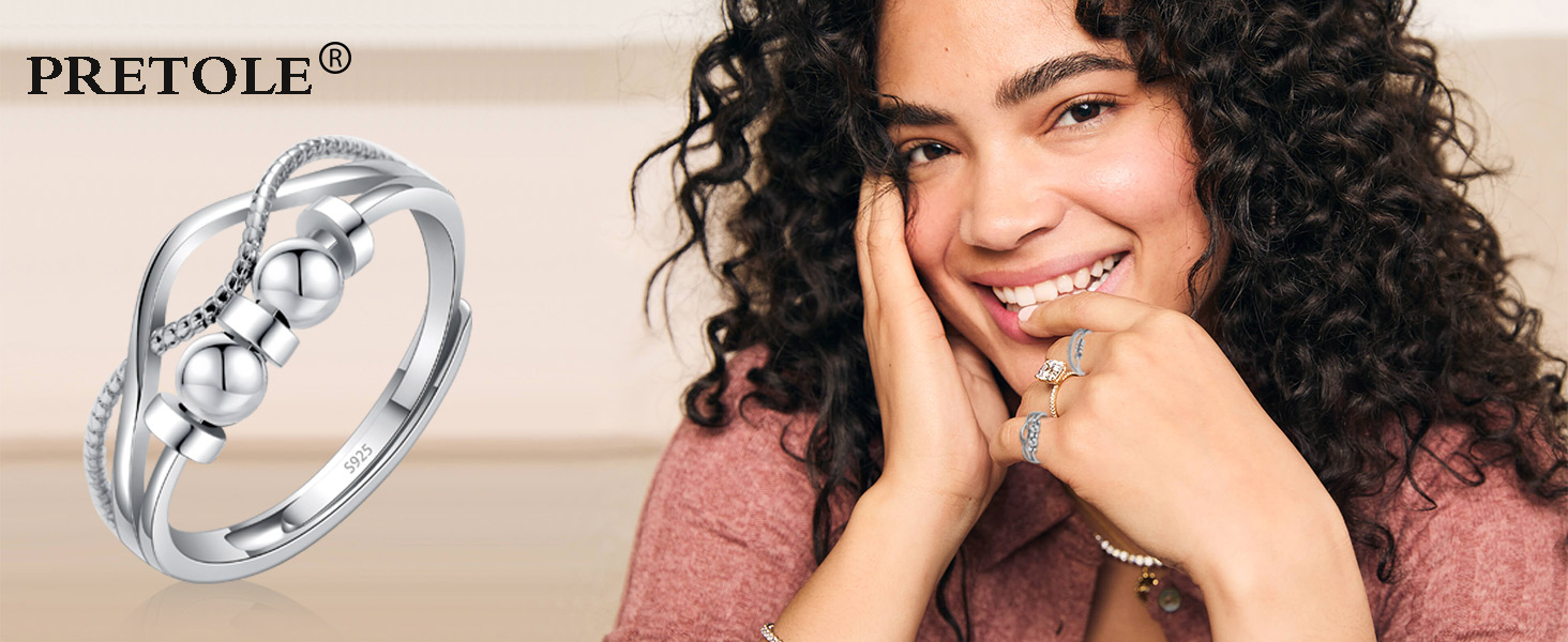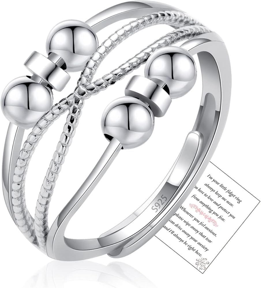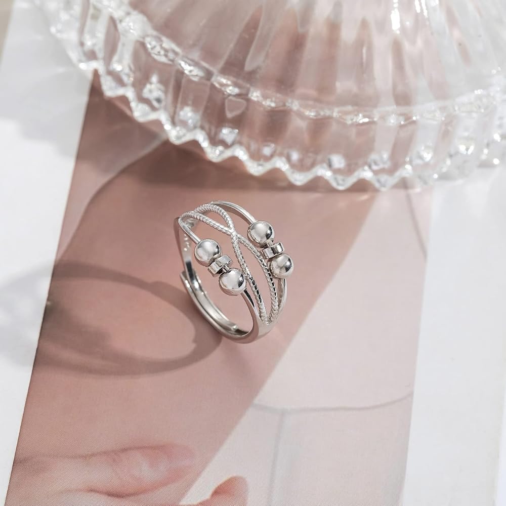 【Anxiety Relief Rings for Women Daughter 】Beads size: 2mm, band gauge: 2.2mm. Made of quality 925 sterling silver, high polished, hypoallergenic, Nickel-free and lead-free, Safe for your skin and comfortable to wear. Turning beads can also increase our confidence and luck.